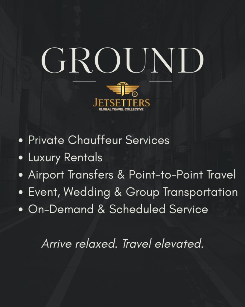 Jetsetters Global offers a comprehensive suite of luxury travel and lifestyle services, including personalized travel concierge services, expert group travel management, cinematic content creation, strategic partnerships, VIP ground transportation logistics, bespoke honeymoon planning, and top-tier media production. Each service is meticulously designed to exceed expectations, providing clients with unparalleled experiences that blend opulence, convenience, and creativity in every aspect of their journey.